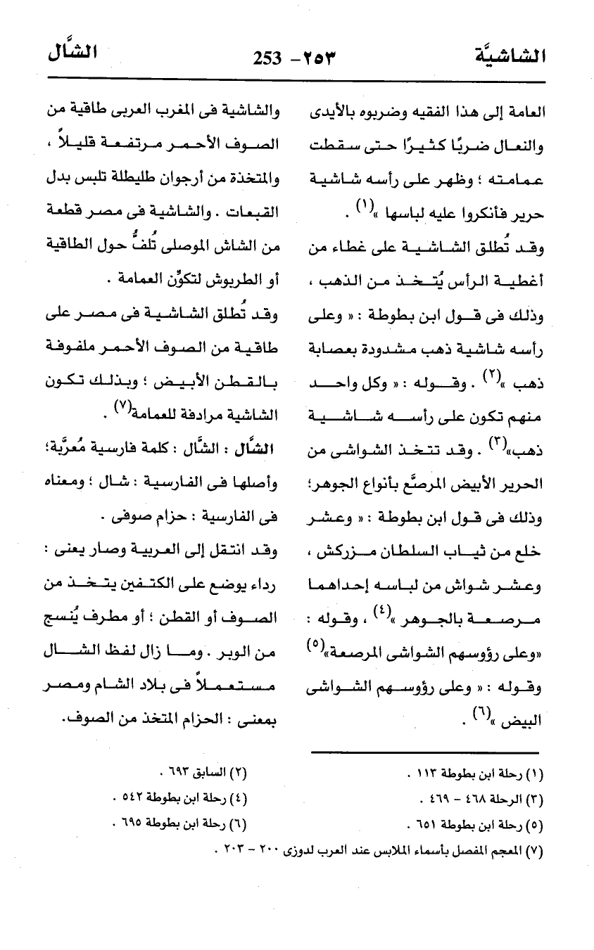 (¬7) المعجم المفصل بأسماء الملابس عند العرب لدوزى 200 - 203.