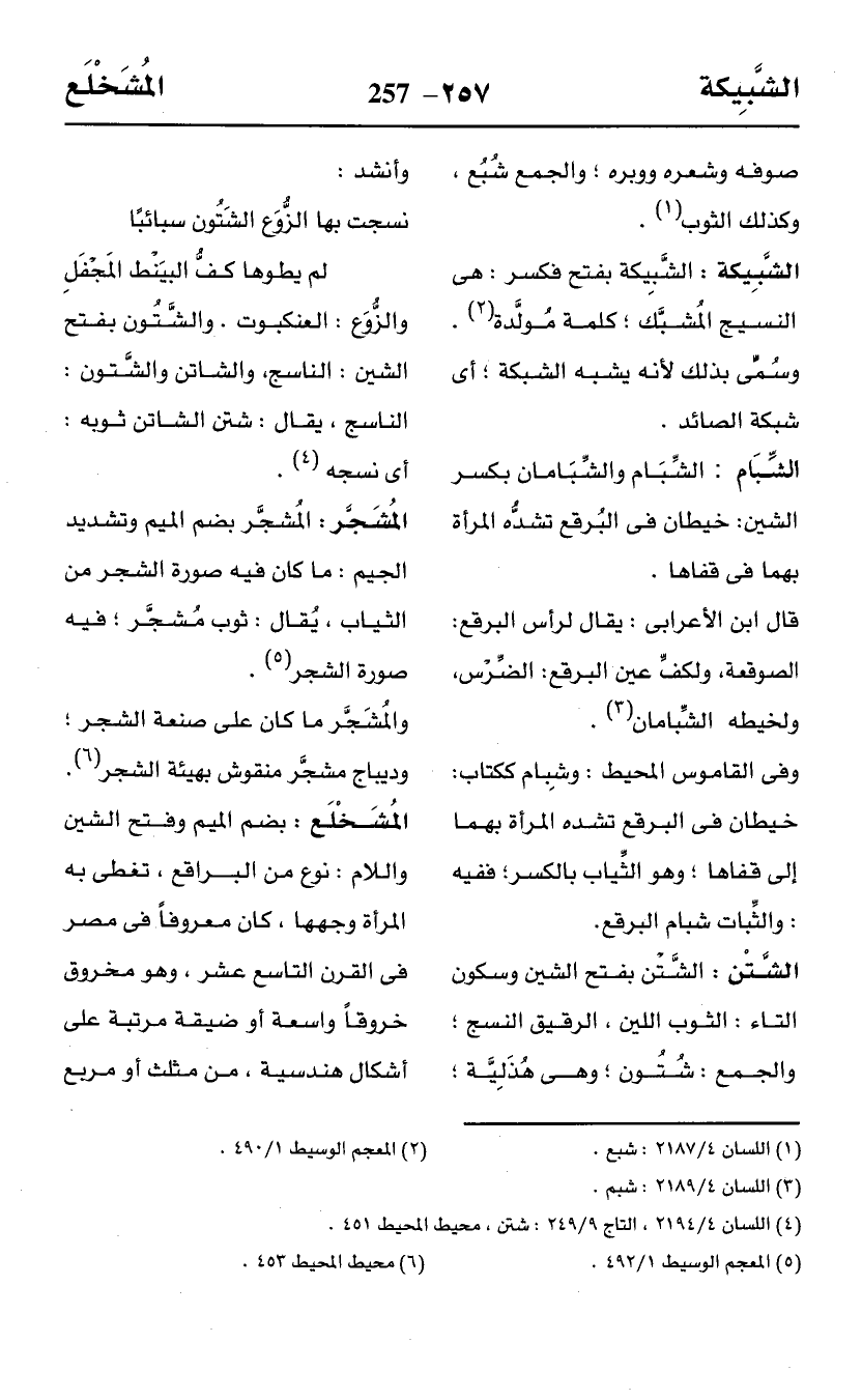 وفي القاموس المحيط: وشِبام ككتاب: خيطان في البرقع تشده المرأة بهما إلى قفاها؛ وهو الثِّياب بالكسر؛ ففيه: والثِّبات شبام البرقع.