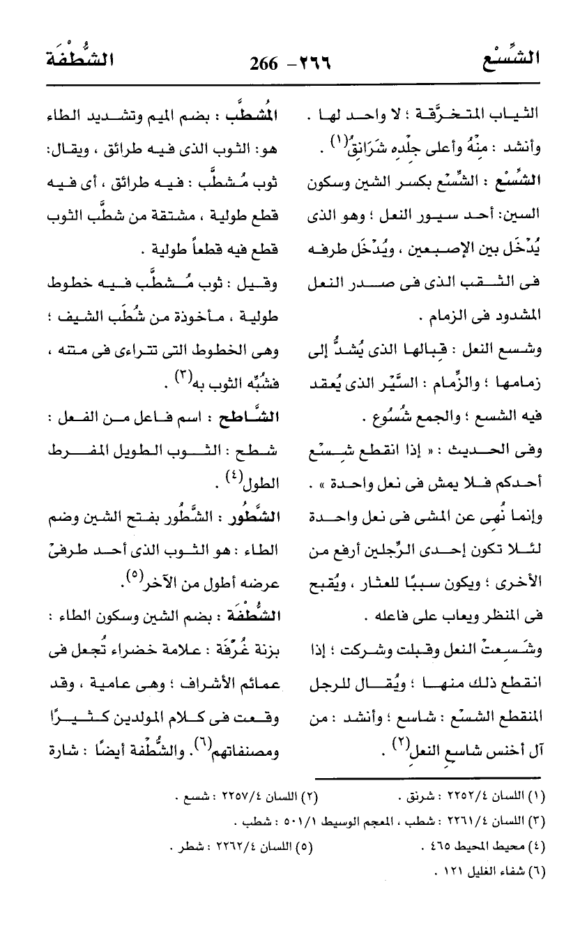 (¬2) اللسان 4/ 2257: شسع.