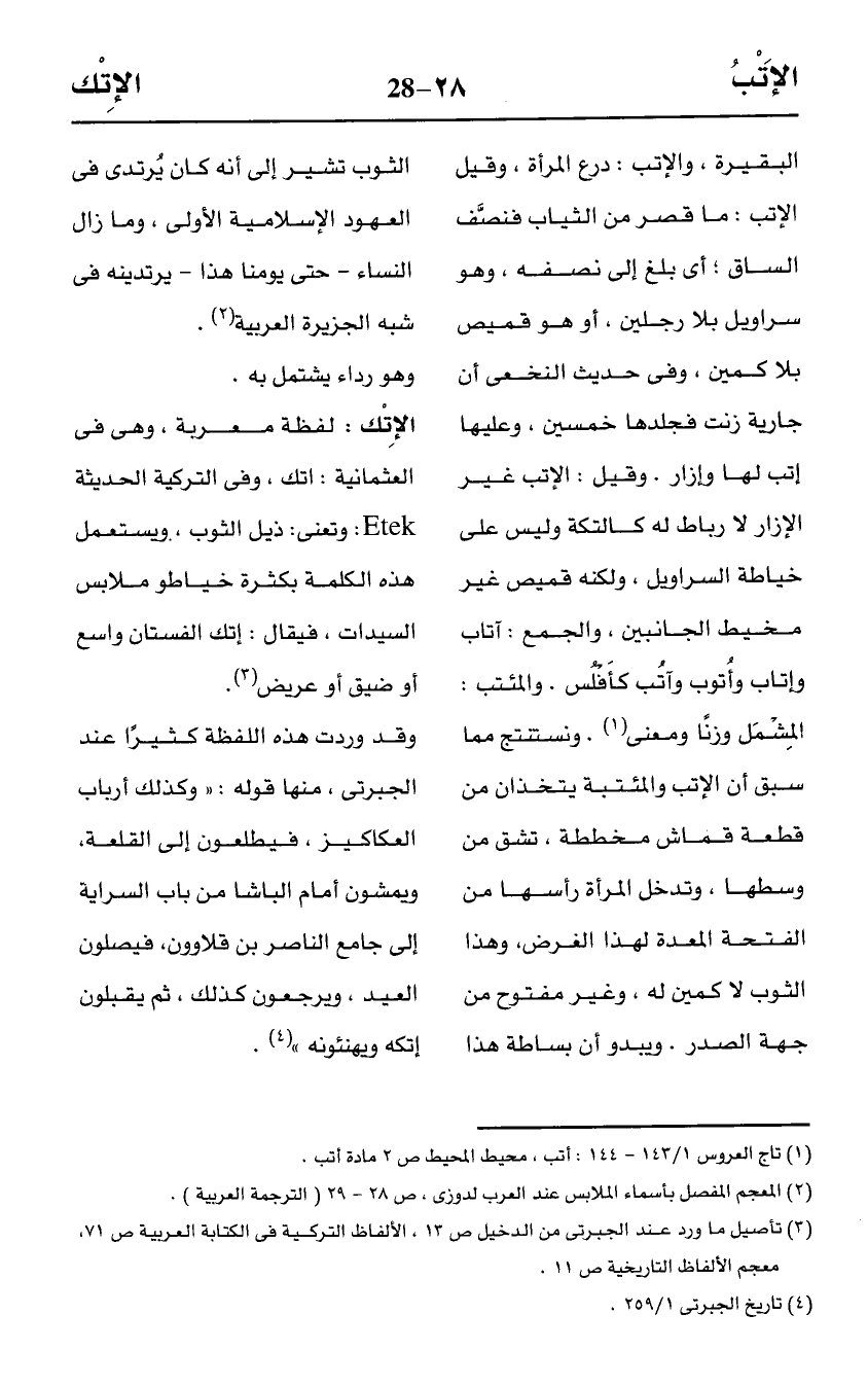 (¬2) المعجم المفصل بأسماء الملابس عند العرب لدوزى، ص 28 - 29 (الترجمة العربية).