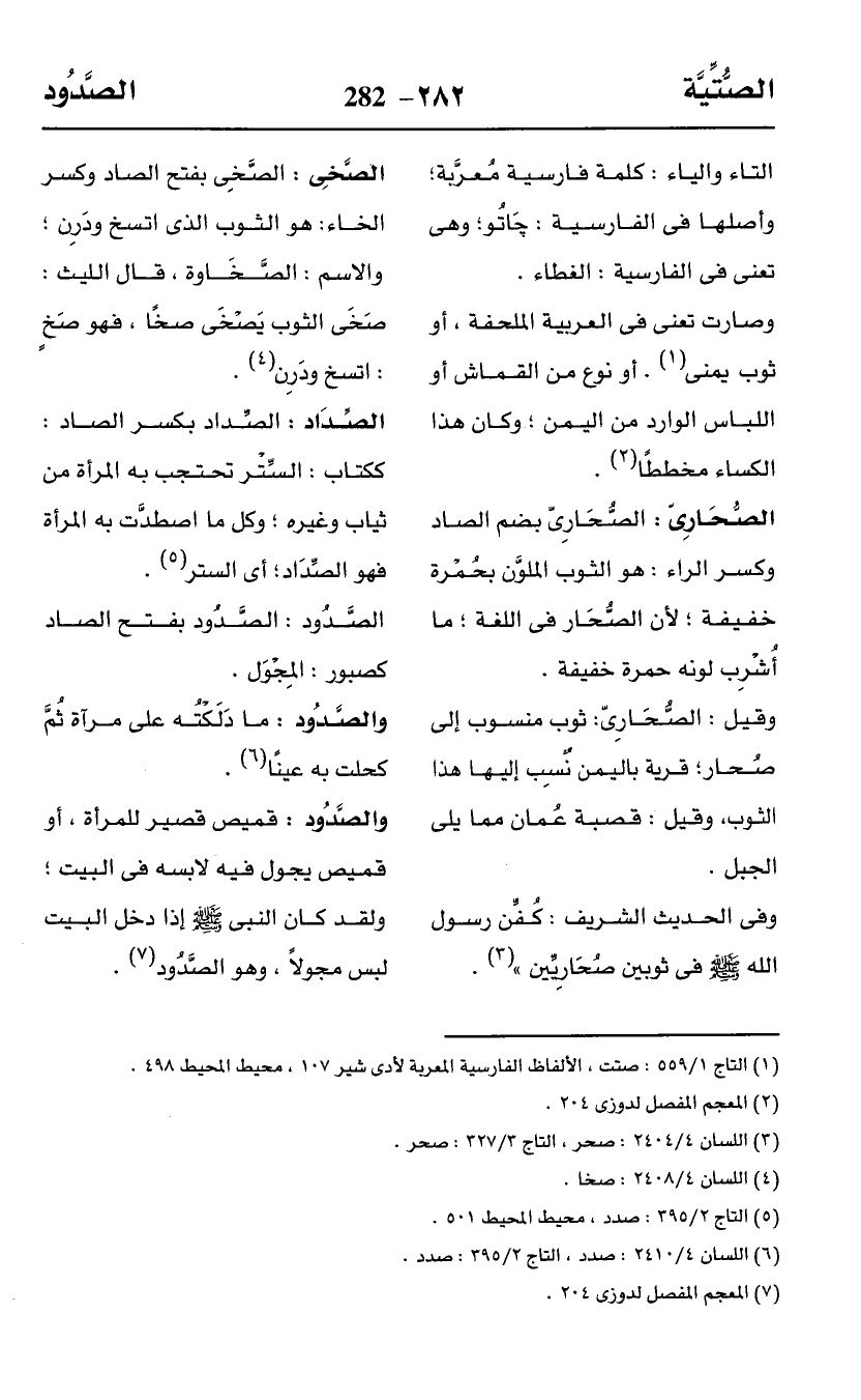 (¬1) التاج 1/ 559: صتت، الألفاظ الفارسية المعربة لأدى شير 107، محيط المحيط 498.