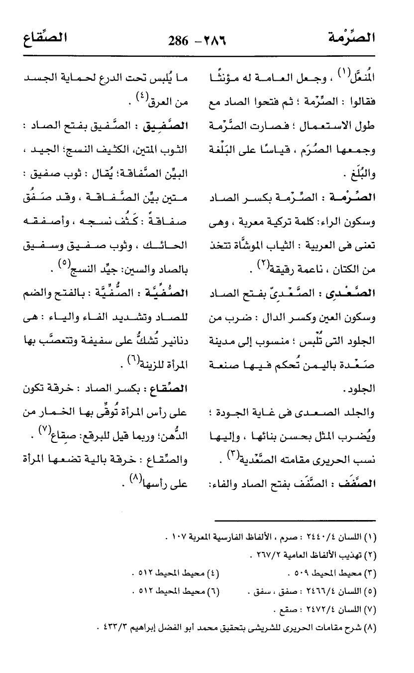 (¬1) اللسان 4/ 2440: صرم، الألفاظ الفارسية المعربة 107.