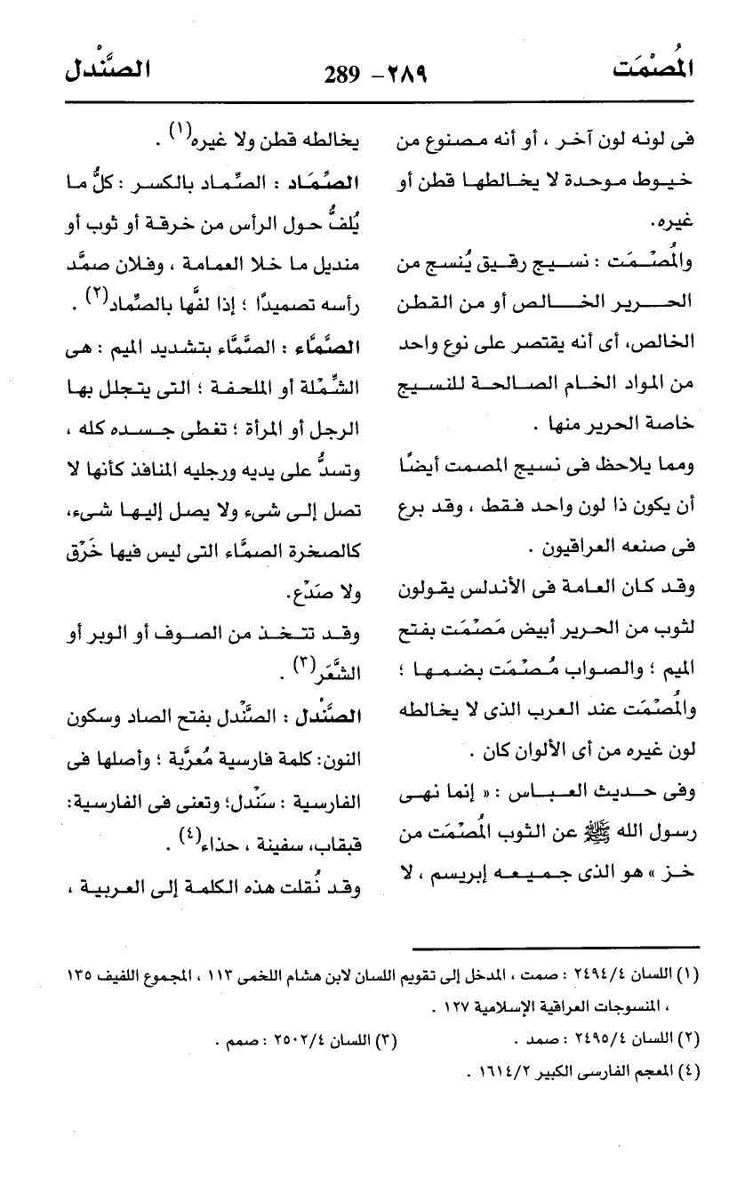 (¬1) اللسان 4/ 2494: صمت، المدخل إلى تقويم اللسان لابن هشام اللخمى 113، المجموع اللفيف 135، المنسوجات العراقية الإسلامية 127.