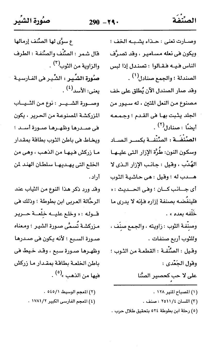 قال شمر: الصِّنْف والصِّنفة: الطرف والزاوية من الثوب (¬3).