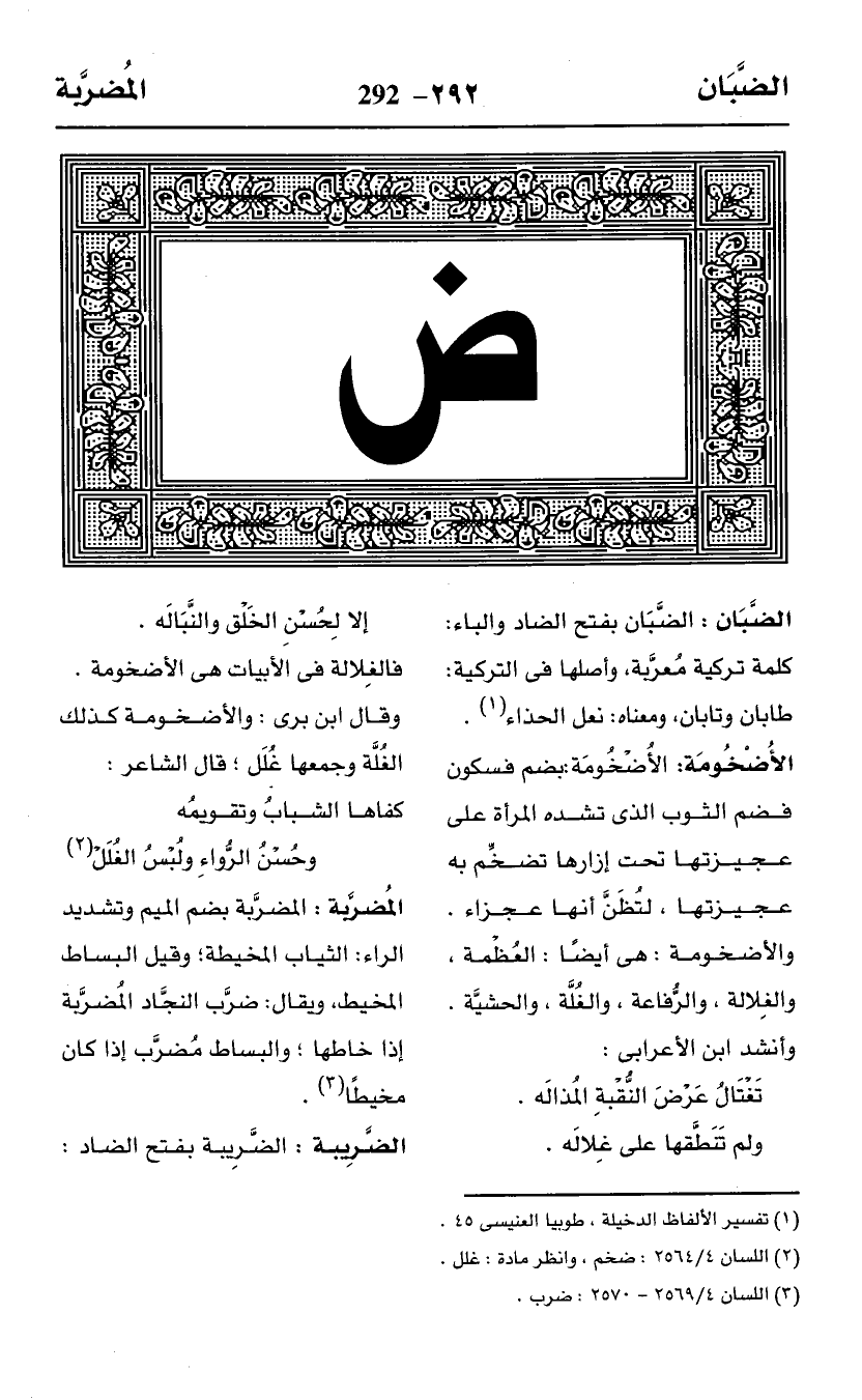 الضَّبَان: الضَّبَان بفتح الضاد والباء: كلمة تركية مُعرَّبة، وأصلها في التركية: طابان وتابان، ومعناه: نعل الحذاء (¬1).
