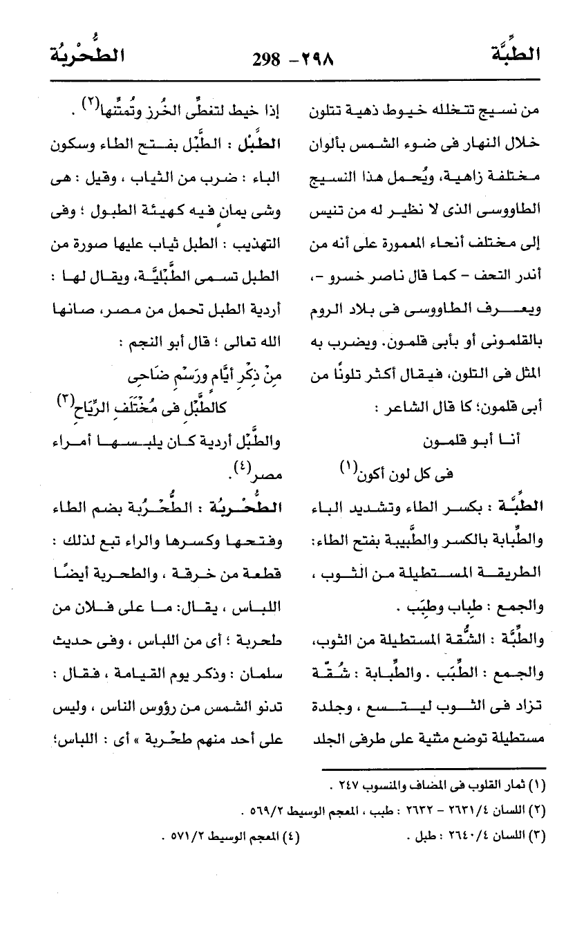 (¬2) اللسان 4/ 2631 - 2633: طبب، المعجم الوسيط 2/ 569.