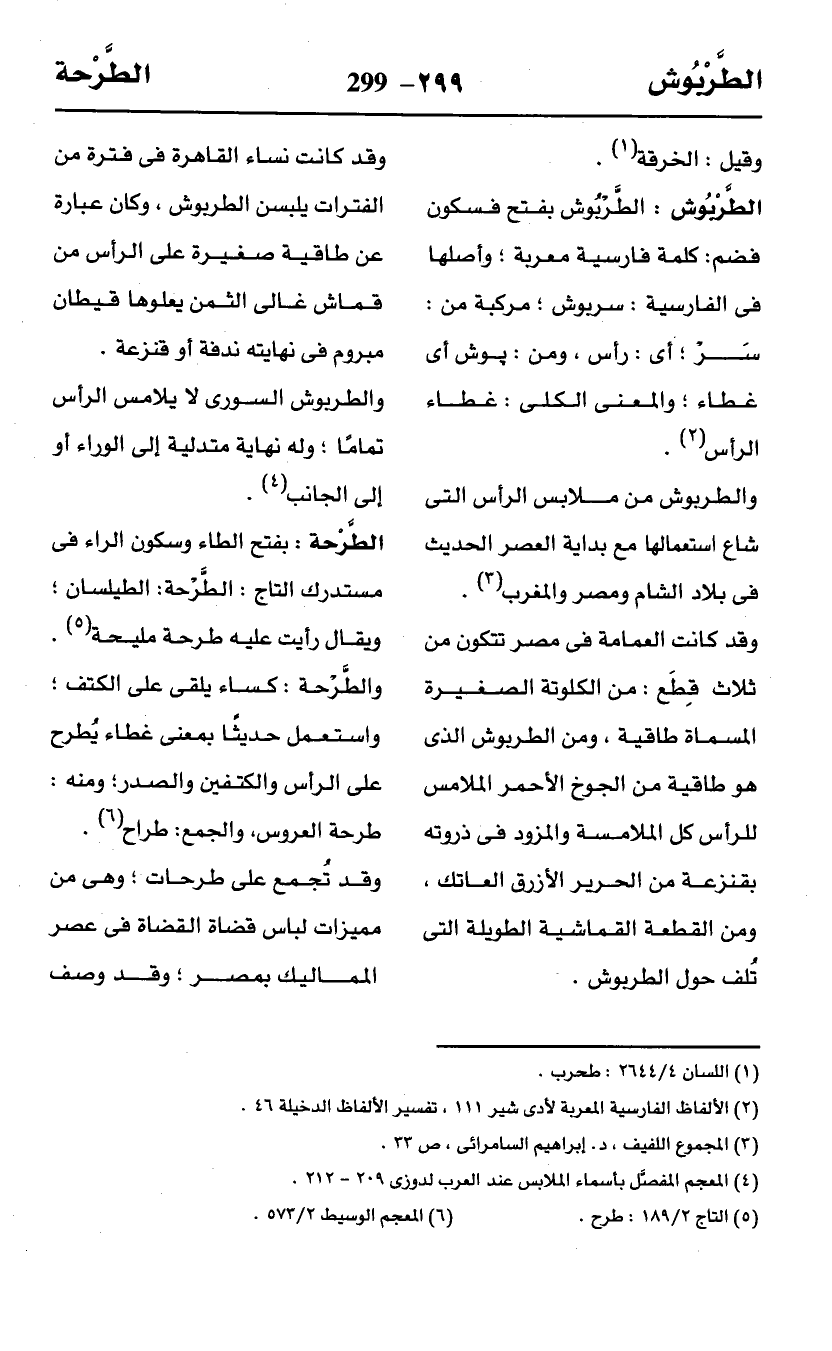 (¬4) المعجم المفصَّل بأسماء الملابس عند العرب لدوزى 209 - 212.