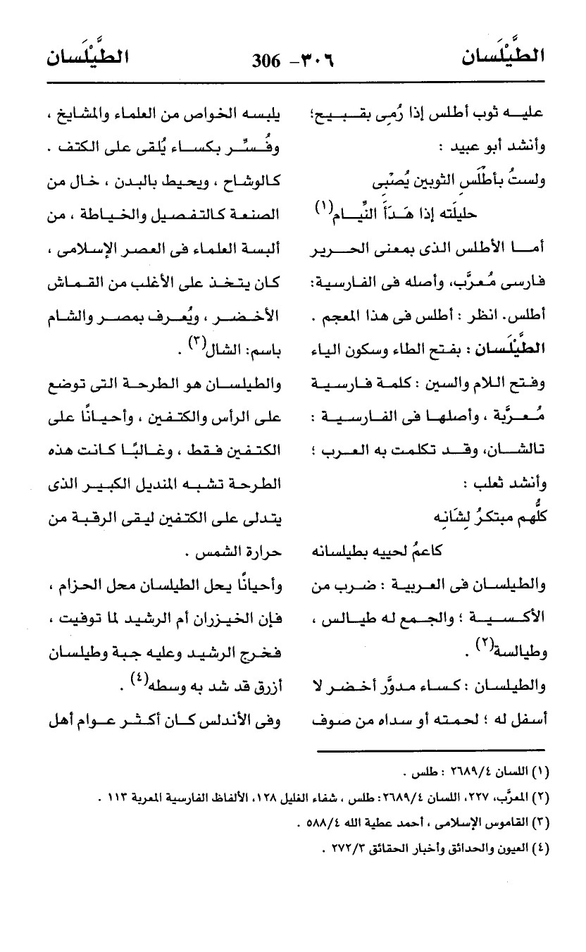 (¬2) المعرَّب، 227، اللسان 4/ 2689: طلس، شفاء الغليل 128, الألفاظ الفارسية المعربة 113.