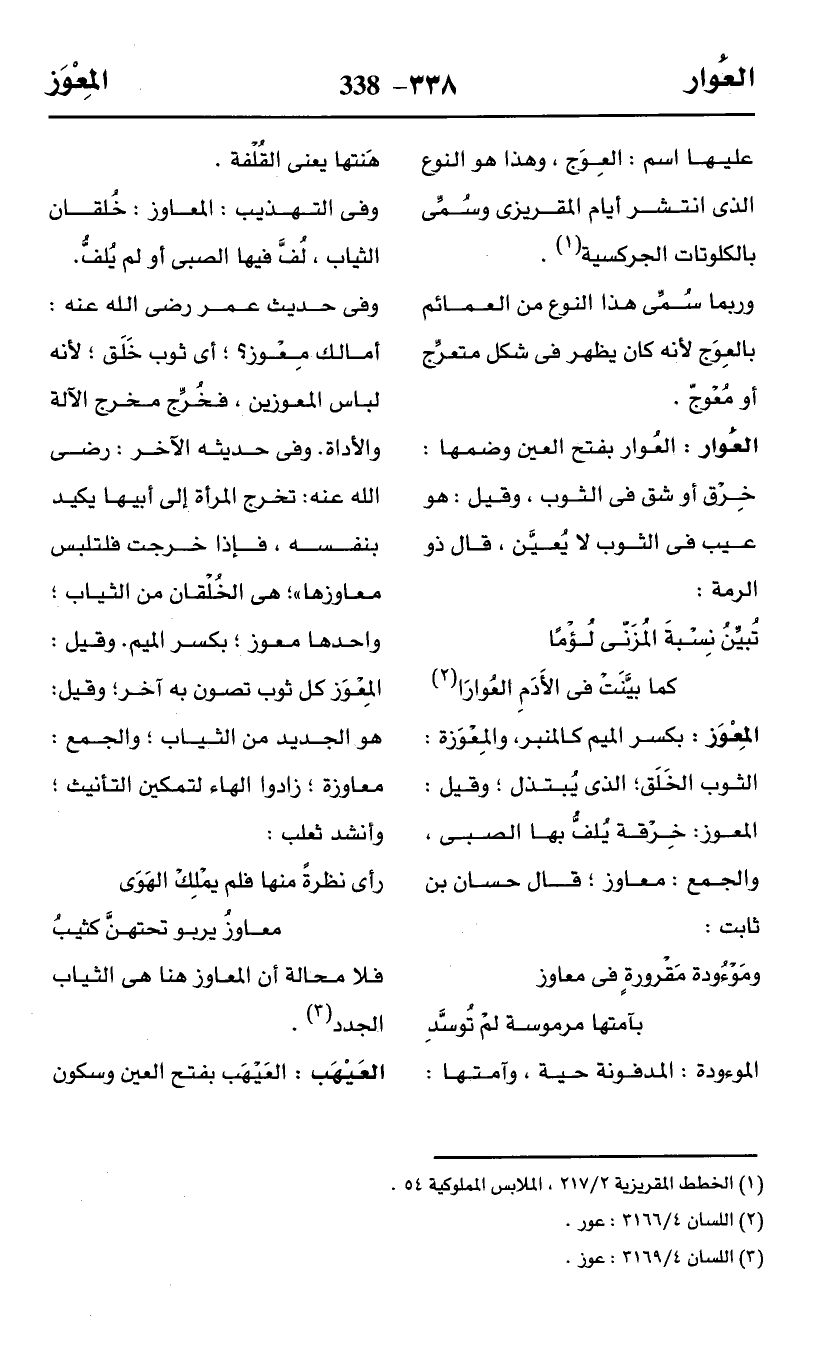فلا محالة أن المعاوز هنا هي الثياب الجدد (¬3).