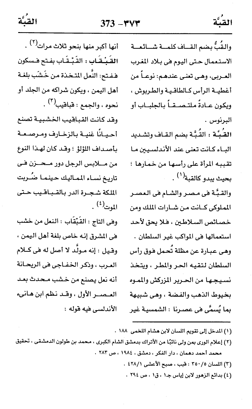 (¬3) اللسان 5/ 350: قبب، صبح الأعشى 1/ 428.