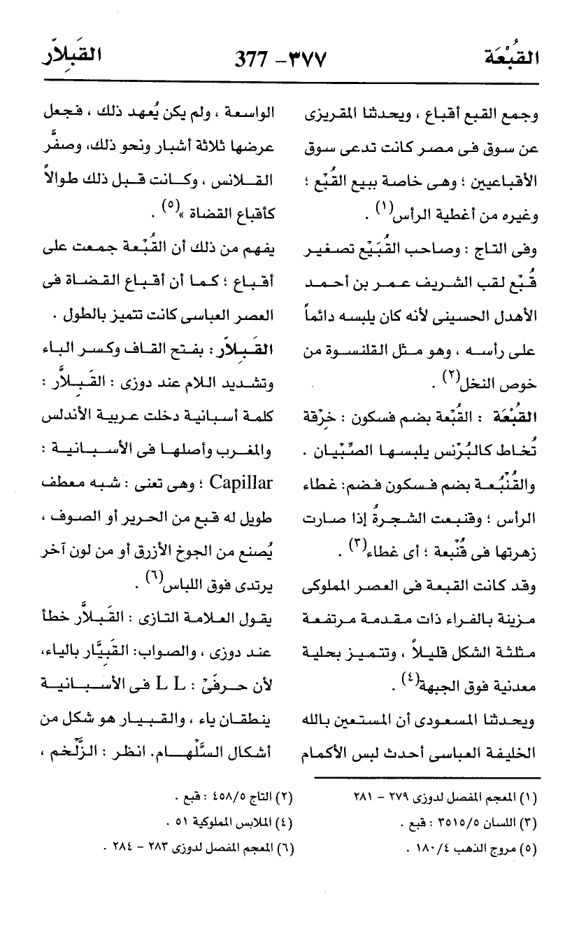 (¬1) المعجم المفصل لدوزى 379 - 281.