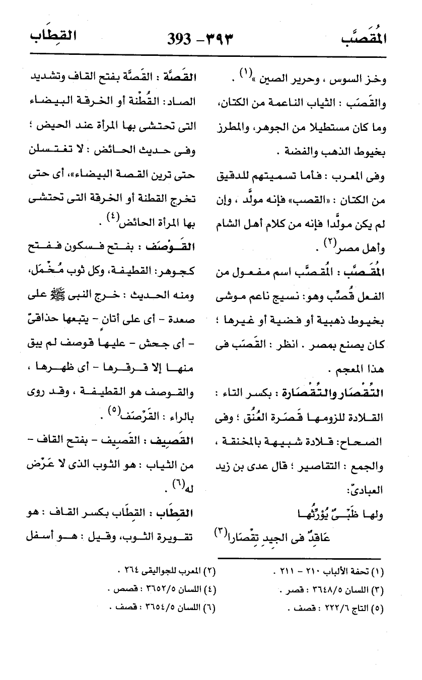 وفى المعرب: فأما تسميتهم للدقيق من الكتان: "القصب" فإنه مولَّد، وإن لم يكن مولَّدا فإنه من كلام أهل الشام وأهل مصر (¬2).
