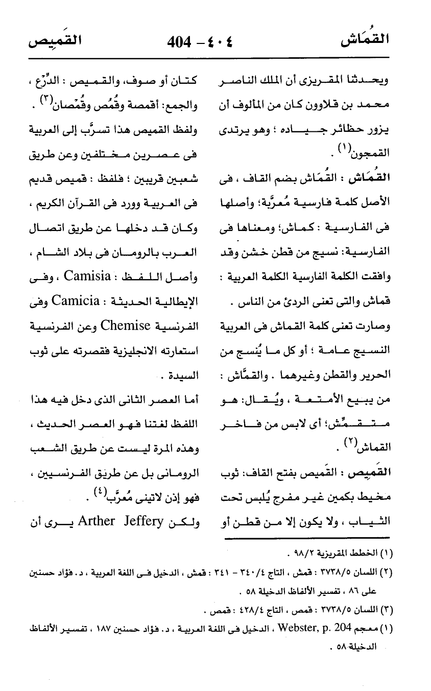 (¬4) معجم Webster,p.204، الدخيل في اللغة العربية، د. فؤاد حسنين 187 تفسير الألفاظ الدخيلة 58.