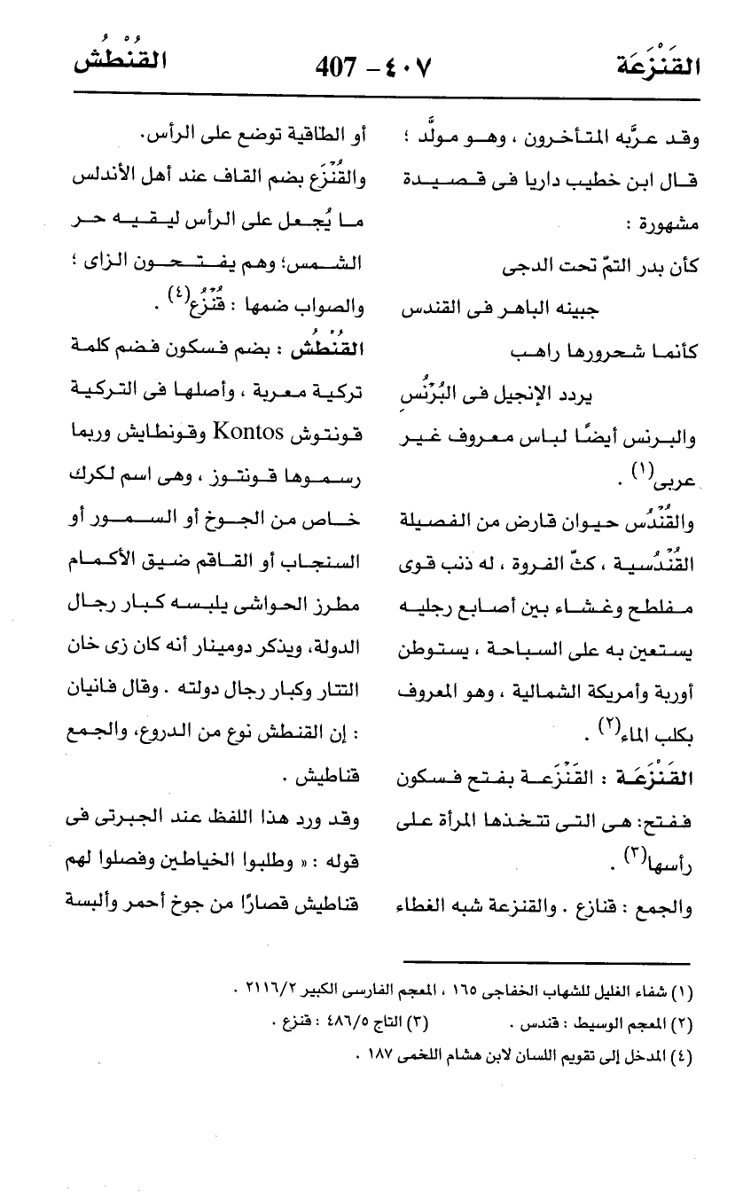 (¬1) شفاء الغليل للشهاب الخفاجى 165، المعجم الفارسى الكبير 2/ 2116.