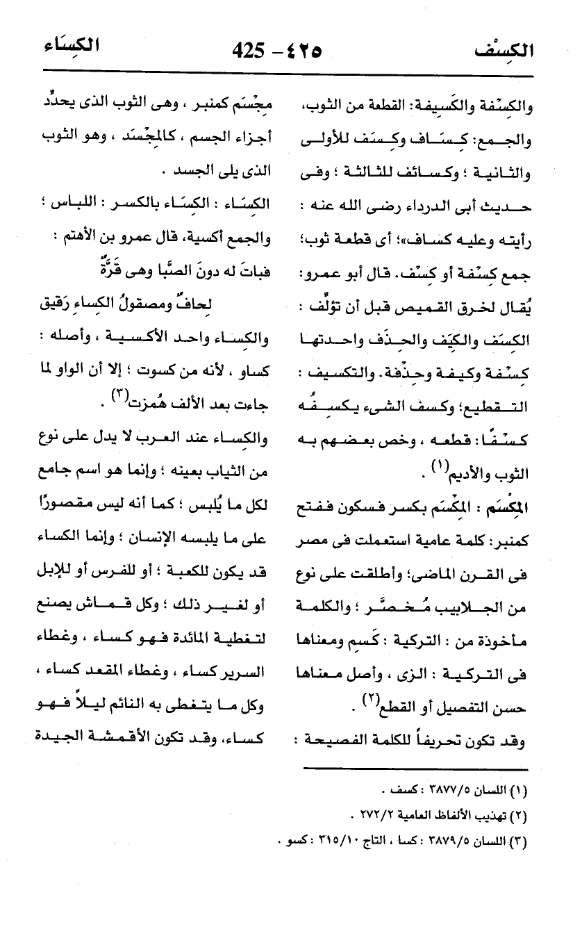 (¬3) اللسان 5/ 3879: كسا، التاج 10/ 315: كسو.