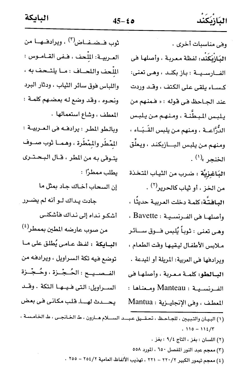 (¬4) معجم تيمور الكبير 2/ 220 - 221، تهذيب الألفاظ العامية 2/ 254 - 255.