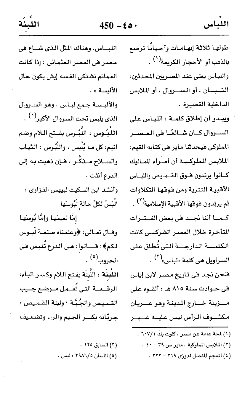 كما أننا نجد في بعض الفترات المتأخرة خلال العصر الشركسى كانت الكلمة الدارجة التى تُطلق على السراويل هى كلمة "لباس" (¬3).
