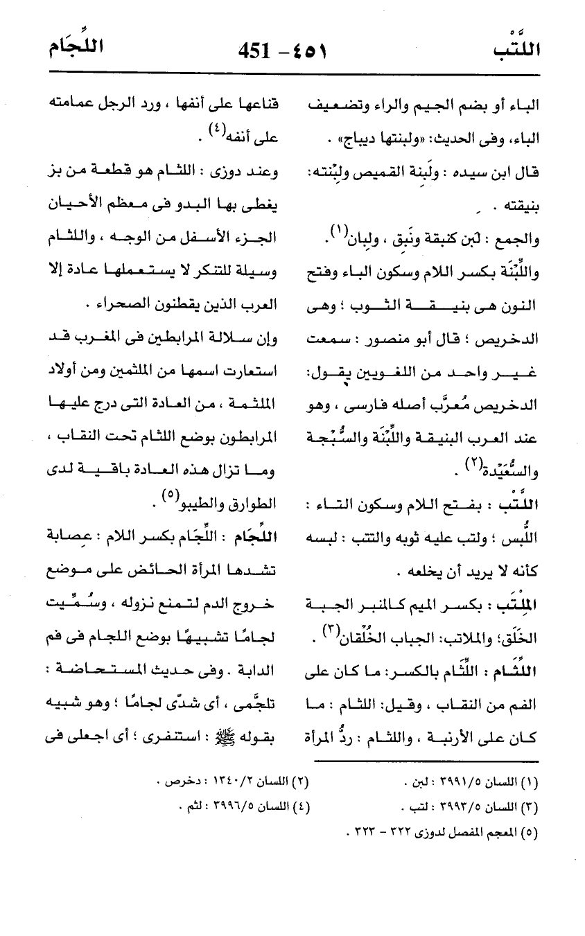 (¬5) المعجم المفصل لدوزي 322 - 323.