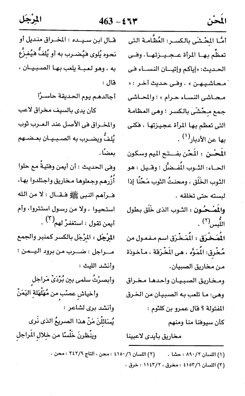 أمَّا المِحْشَى بالكسر: العُظَّامة التي تعظِّم بها المرأة عجيزتها. وفى الحديث: "إياكم وإتيان النساء في محاشيهن". وفى حديث آخر: "محاشى النساء حرام"؛ والمحاشى جمع مِحْشَى بالكسر؛ وهي العظامة التي تعظم بها المرأة عجيزتها، فكنى بها عن الأدبار (¬1).