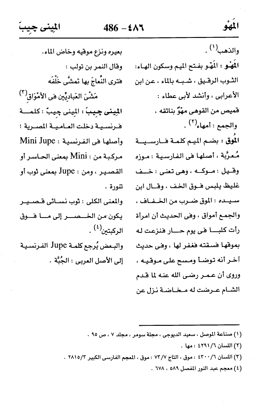 (¬3) اللسان 6/ 4300: موق، التاج 7/ 73: موق، المعجم الفارسي الكبير 3/ 2815.