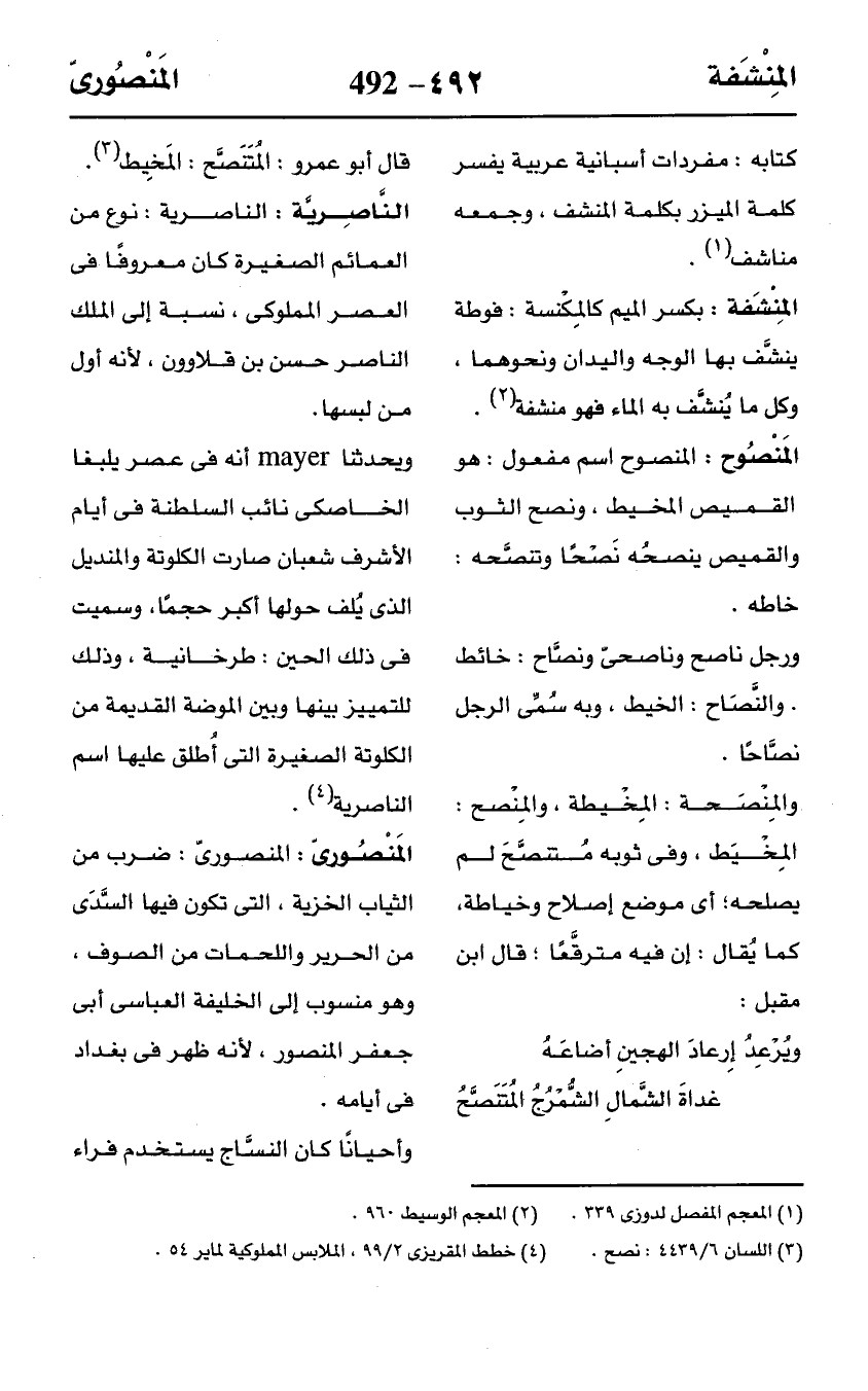 (¬4) خطط المقريزى 2/ 99، الملابس المملوكية لماير 54.