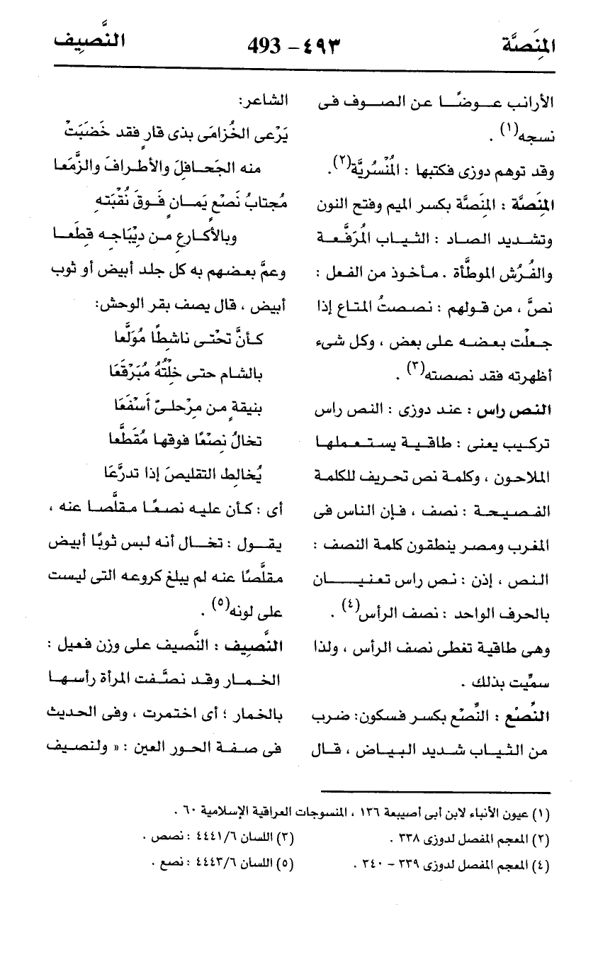 (¬4) المعجم المفصل لدوزى 339 - 340.