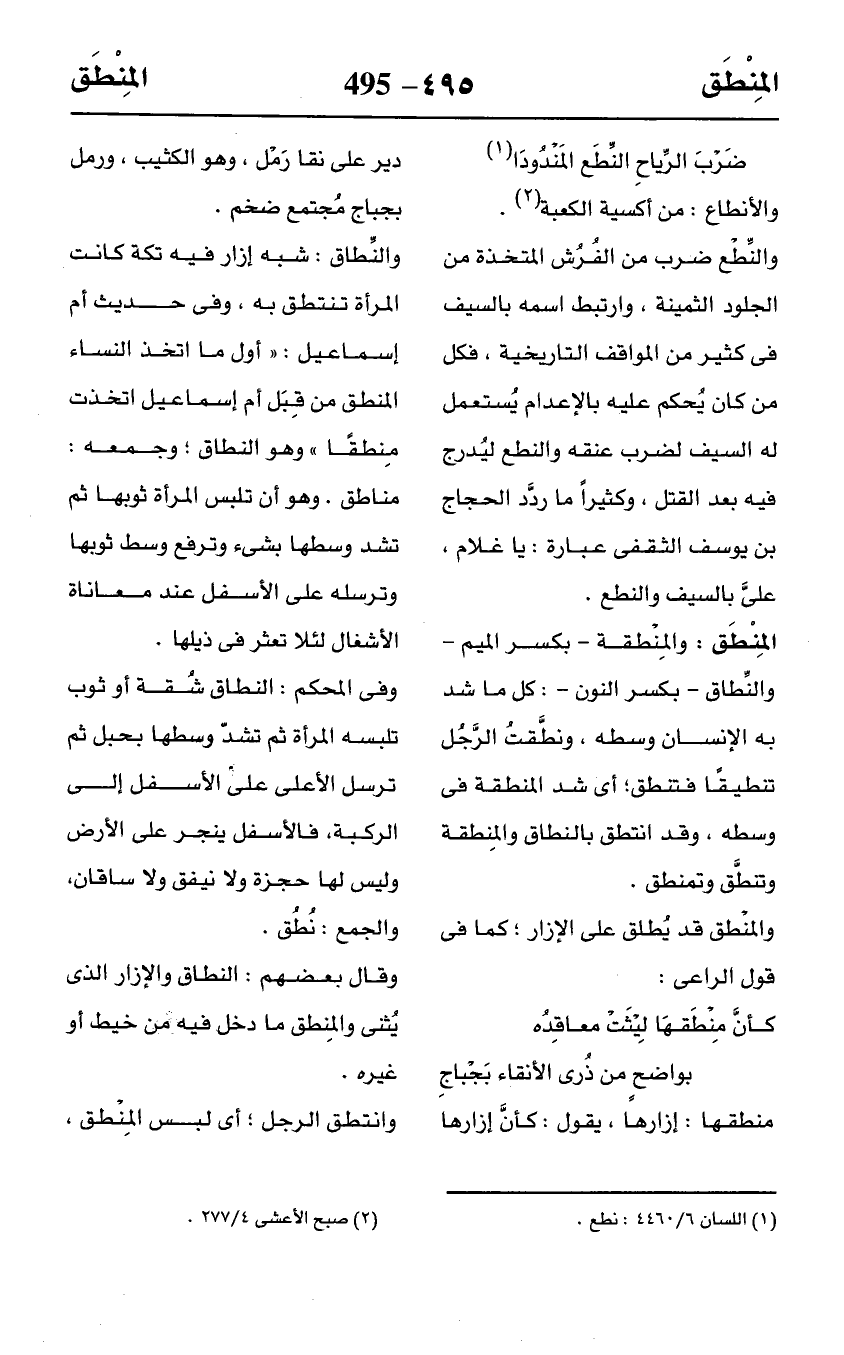 والمنْطق قد يُطلق على الإزار؛ كما في قول الراعى: