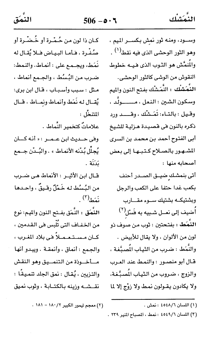 النَّمَشْك: النَّمَشْك بفتح النون والميم وسكون الشين: النعل، مولَّد، وقيل: بالتاء: تَمَشْك، وقد ورد ذكره بالنون في قصيدة هزلية للشيخ أبى الفتوح أحمد بن محمد بن السرى المشهور بالصلاح كتبها إلى بعض أصحابه منها: