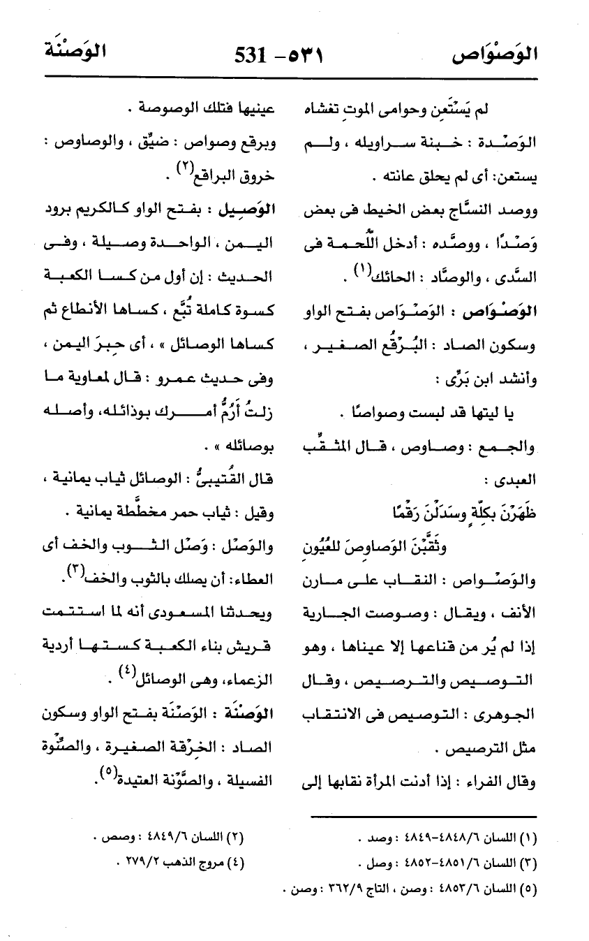 الوَصْوَاص: الوَصْوَاص بفتح الواو وسكون الصاد: البُرْقُع الصغير، وأنشد ابن بَرِّى: