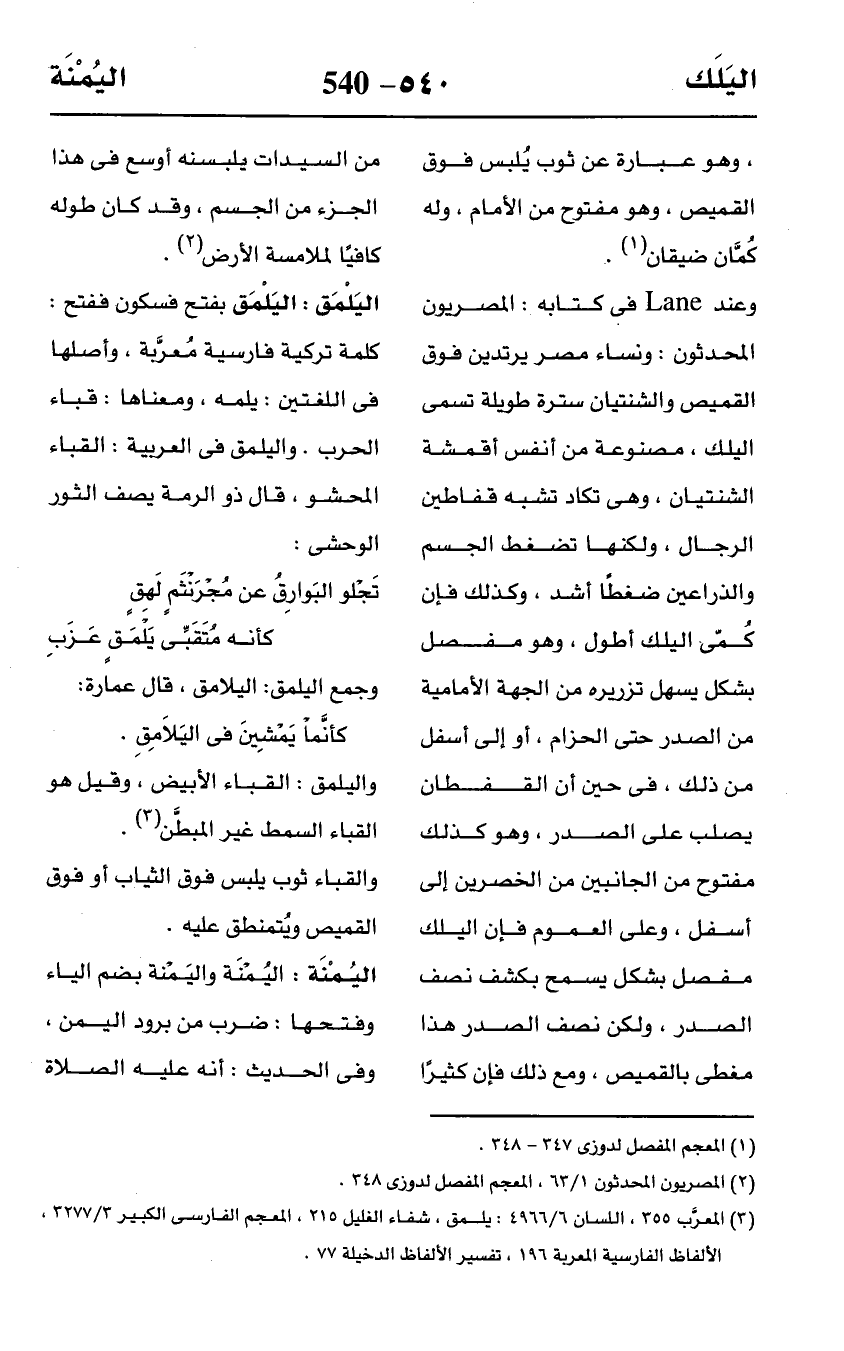 (¬3) المعرَّب 355، اللسان 6/ 4966: يلمق، شفاء الغليل 215، المعجم الفارسى الكبير 3/ 3277، الألفاظ الفارسية المعربة 196، تفسير الألفاظ الدخيلة 77.