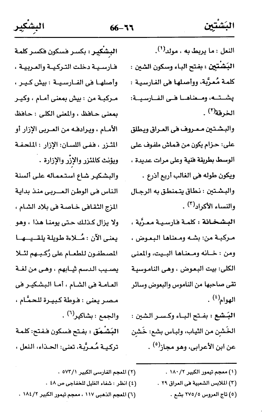 (¬6) المعجم الذهبى 117. معجم تيمور الكبير 2/ 184.