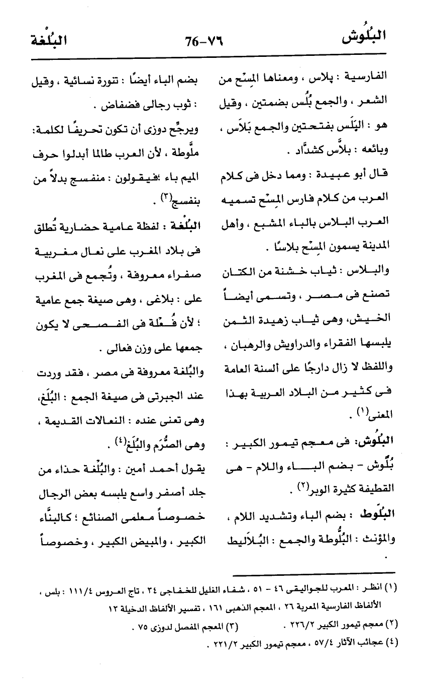 (¬1) انطر: المعرب للجواليقى 46 - 51, شفاء الغليل للخفاجى 34، تاج العروس 4/ 111: بلس، الألفاظ الفارسية المعربة 26، المعجم الذهبى 161، تفسير الألفاظ الدخيلة 12.