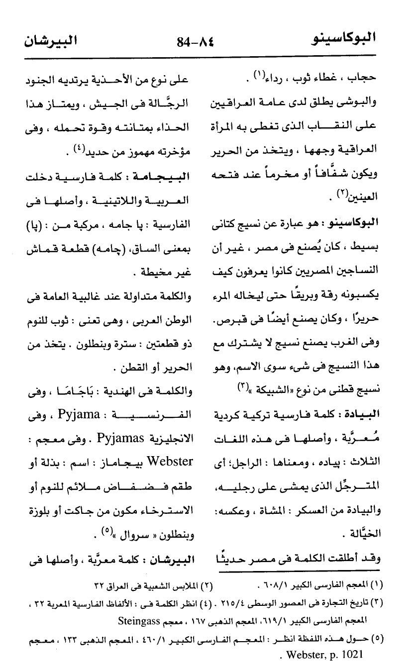 (¬5) حول هذه اللفظة انظر: المعجم الفارسى الكبير 1/ 460، المعجم الذهبى 133، معجم Webster,p.1021.