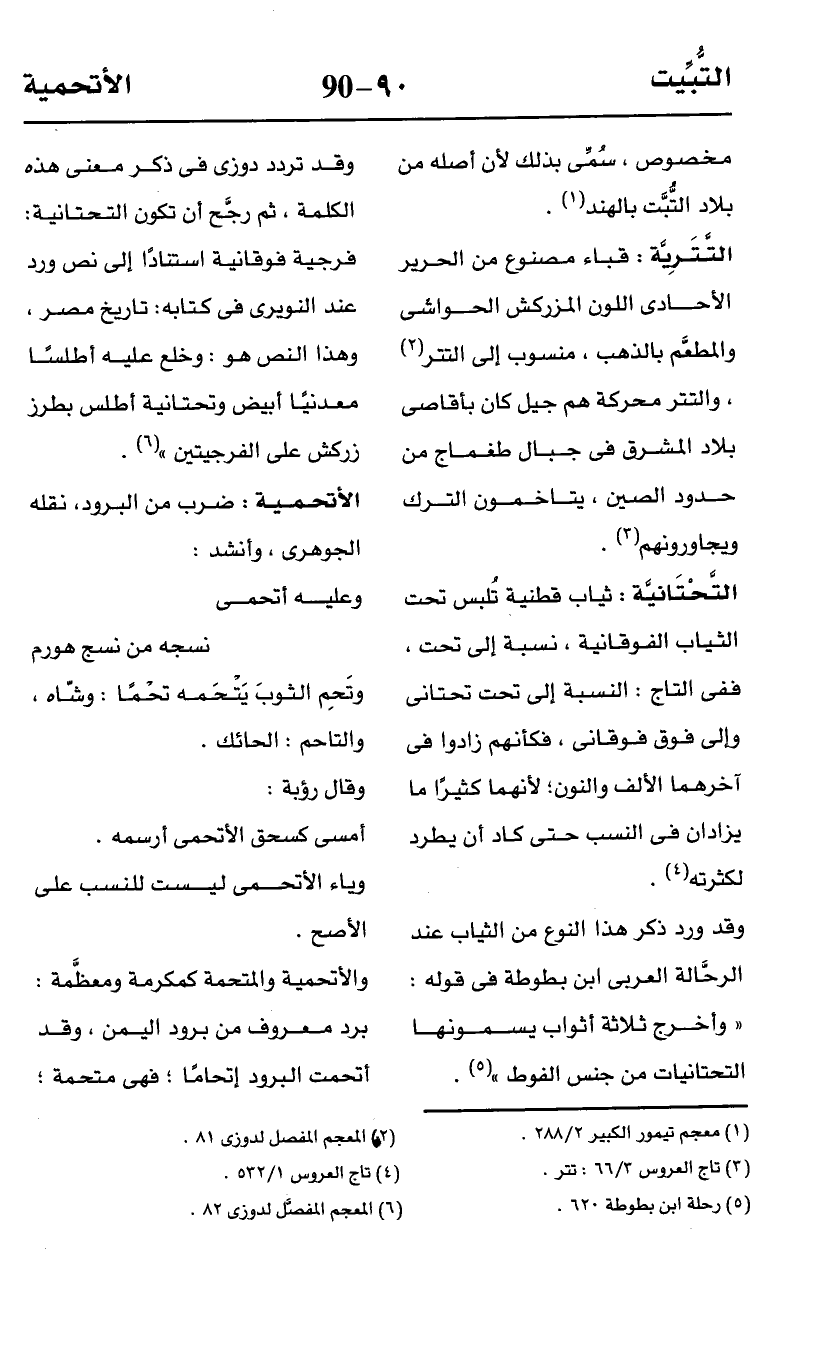 وقد تردد دوزى في ذكر معنى هذه الكلمة، ثم رجَّح أن تكون التحتانية: فرجية فوقانية استنادًا إلى نص ورد عند النويرى في كتابه: تاريخ مصر، وهذا النص هو: وخلع عليه أطلسًا معدنيًا أبيض وتحتانية أطلس بطرز زركش على الفرجيتين" (¬6).