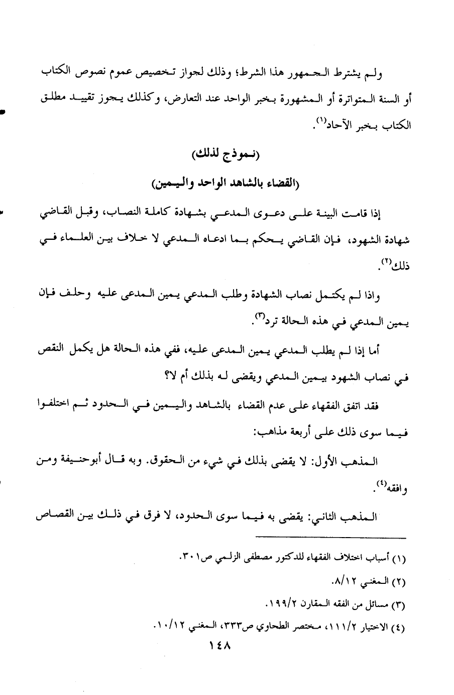 نموذج لذلك: القضاء بالشاهد الواحد واليمين