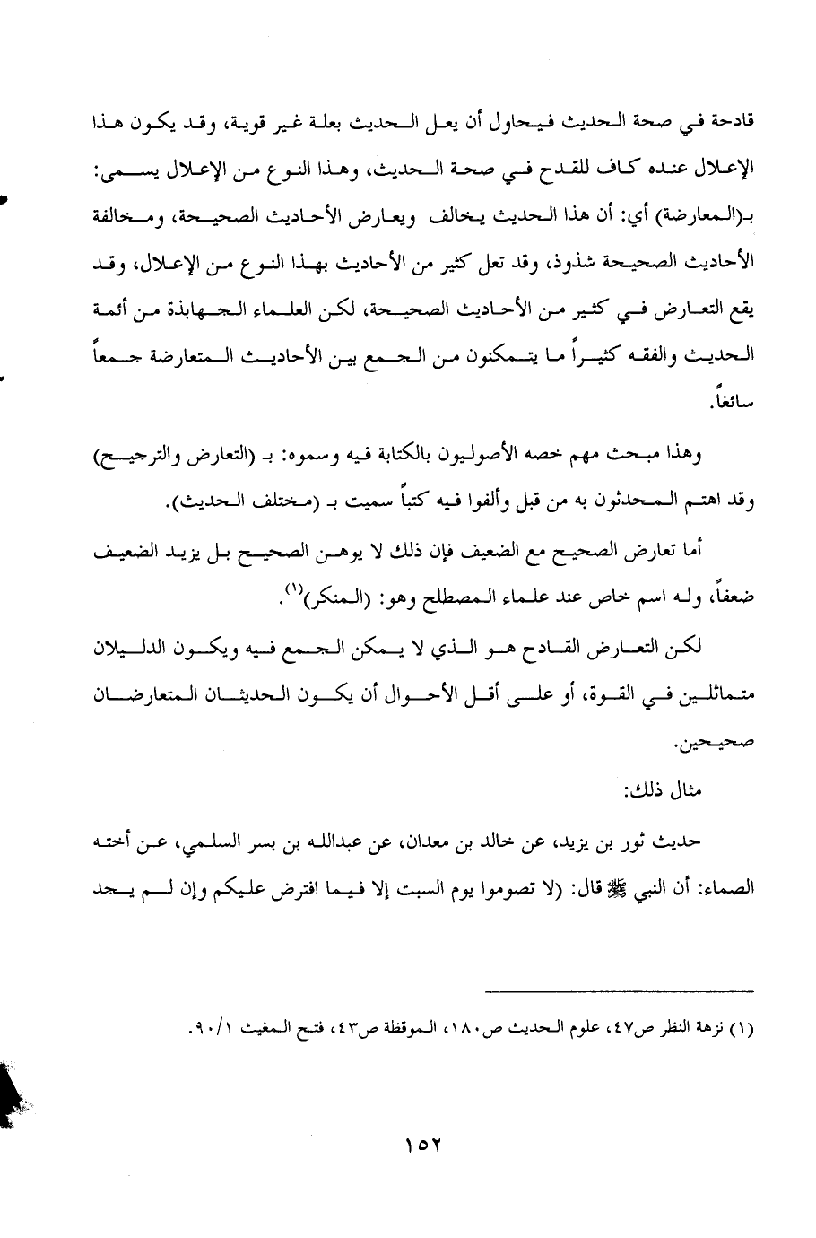لكن التعارض القادح هو الذي لا يمكن الجمع فيه ويكون الدليلان متماثلين في القوة، أو على أقل الأحوال أن يكون الحديثان المتعارضان صحيحين.