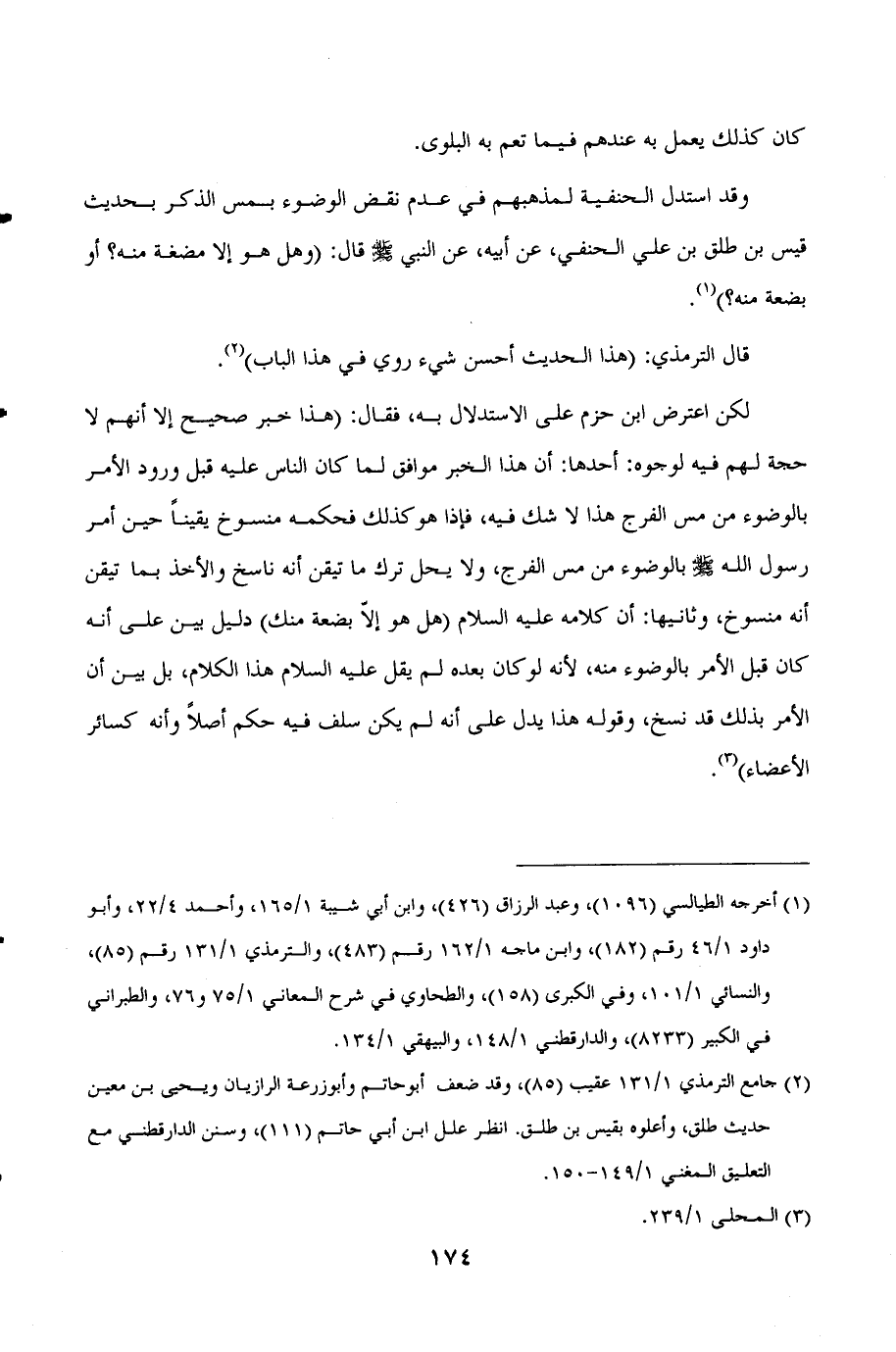 (¬2) جامع الترمذي 1/131 عقيب (85) ، وقد ضعف أبو حاتم وأبو زرعة الرازيان ويحيى بن معين حديث طلق، وأعلوه بقيس بن طلق. أنظر علل ابن أبي حاتم (111) ، وسنن الدارقطني مع التعليق المغني 1/149-150.