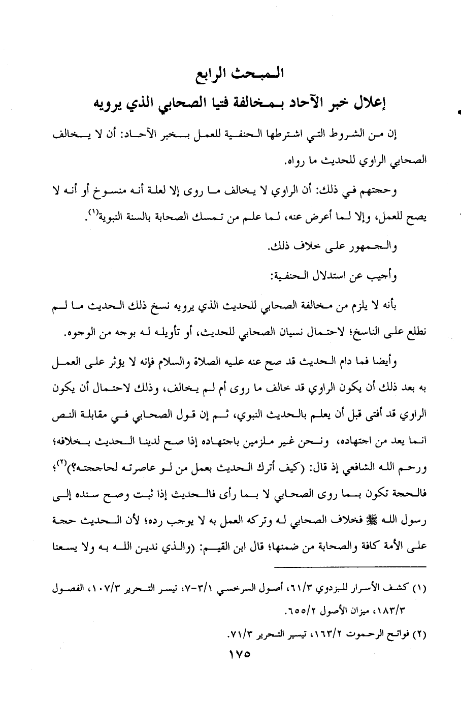 المبحث الرابع: اعلال خبر الآحاد بمخالفة فتيا الصحابي الذي يرويه