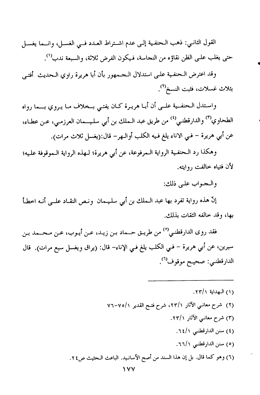 وقد اعترض الحنفية على استدلال الجمهور بأن أبا هريرة راوي الحديث أفتى بثلاث غسلات، فثبت النسخ (¬2) .