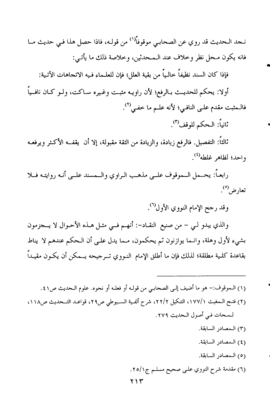 (¬1) الموقوف: - هو ما أضيف الى الصحابي من قوله أو فعله أو نحوه. علوم الحديث ص41.