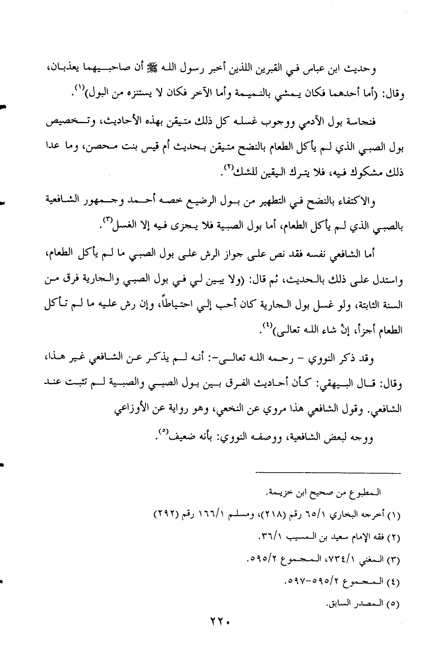فنجاسة بول الآدمي ووجوب غسله كل ذلك متيقن بهذه الاحاديث، وتخصيص بول الصبي الذي لم يأكل الطعام بالنضح متيقن بحديث أم قيس بنت محصن، وما عدا ذلك مشكوك فيه، فلا يترك اليقين للشك (¬2) .