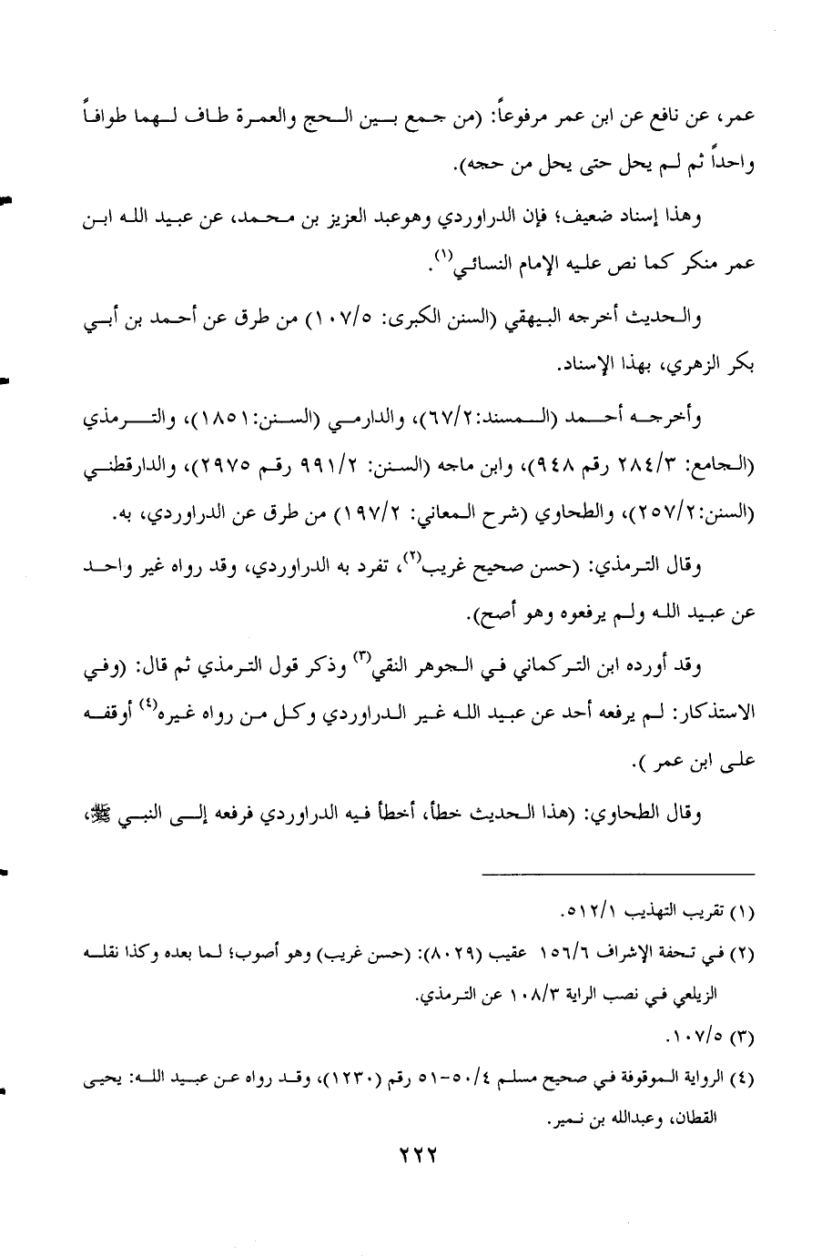 وأخرجه أحمد (المسند:2/67) ، والدارمي (السنن:1851) ، والترمذي (الجامع: 3/284 رقم 948) ، وابن ماجه (السنن: 2/991 رقم 2975) ، والدارقطني (السنن:2/257) ، والطحاوي (شرح المعاني: 2/197) من طرق عن الدراوردي، به.