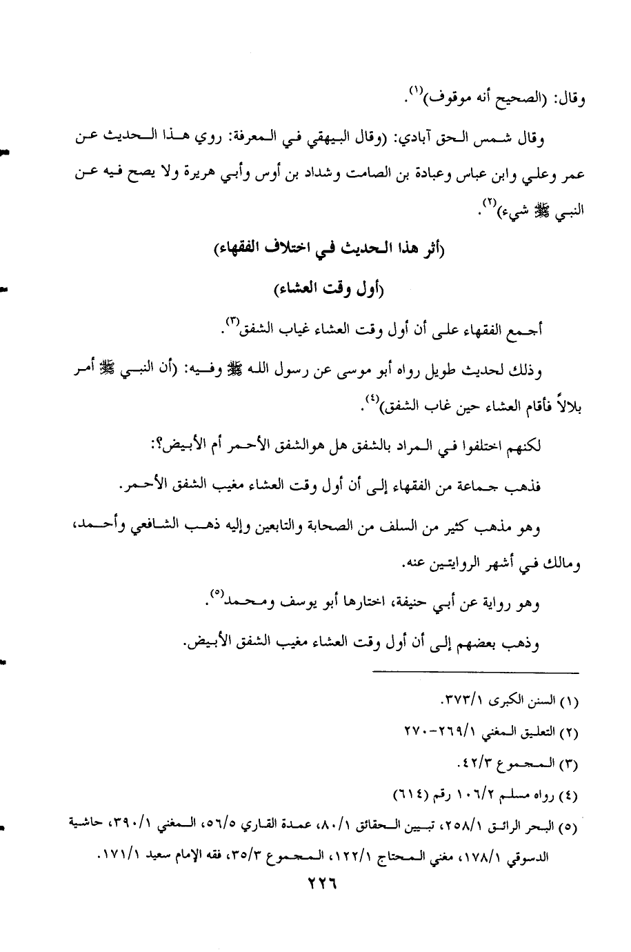 (¬5) البحر الرائق 1/258، تبيين الحقائق 1/80، عمدة القاري 5/56، المغني 1/390، حاشية الدسوقي 1/178، مغني المحتاج 1/122، المجموع 3/35، فقه الامام سعيد 1/171.