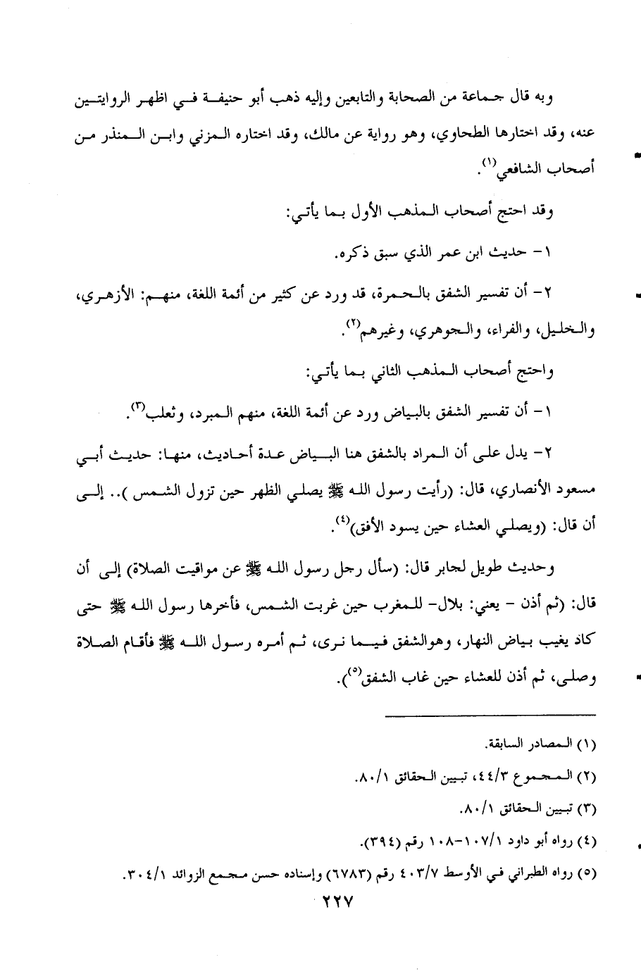 1- ان تفسير الشفق بالبياض ورد عن أئمة اللغة، منهم المبرد، وثعلب (¬3) .