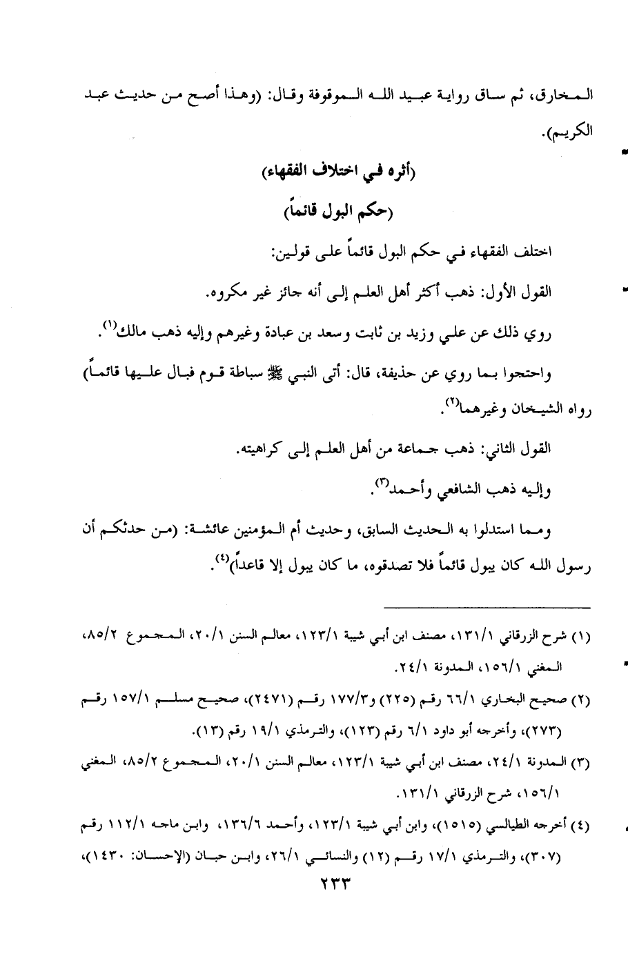 (¬1) شرح الزرقاني 1/131، مصنف ابن أبي شيبة 1/123، معالم السنن 1/20، المجموع 2/85، المغني 1/156، المدونة 1/24.