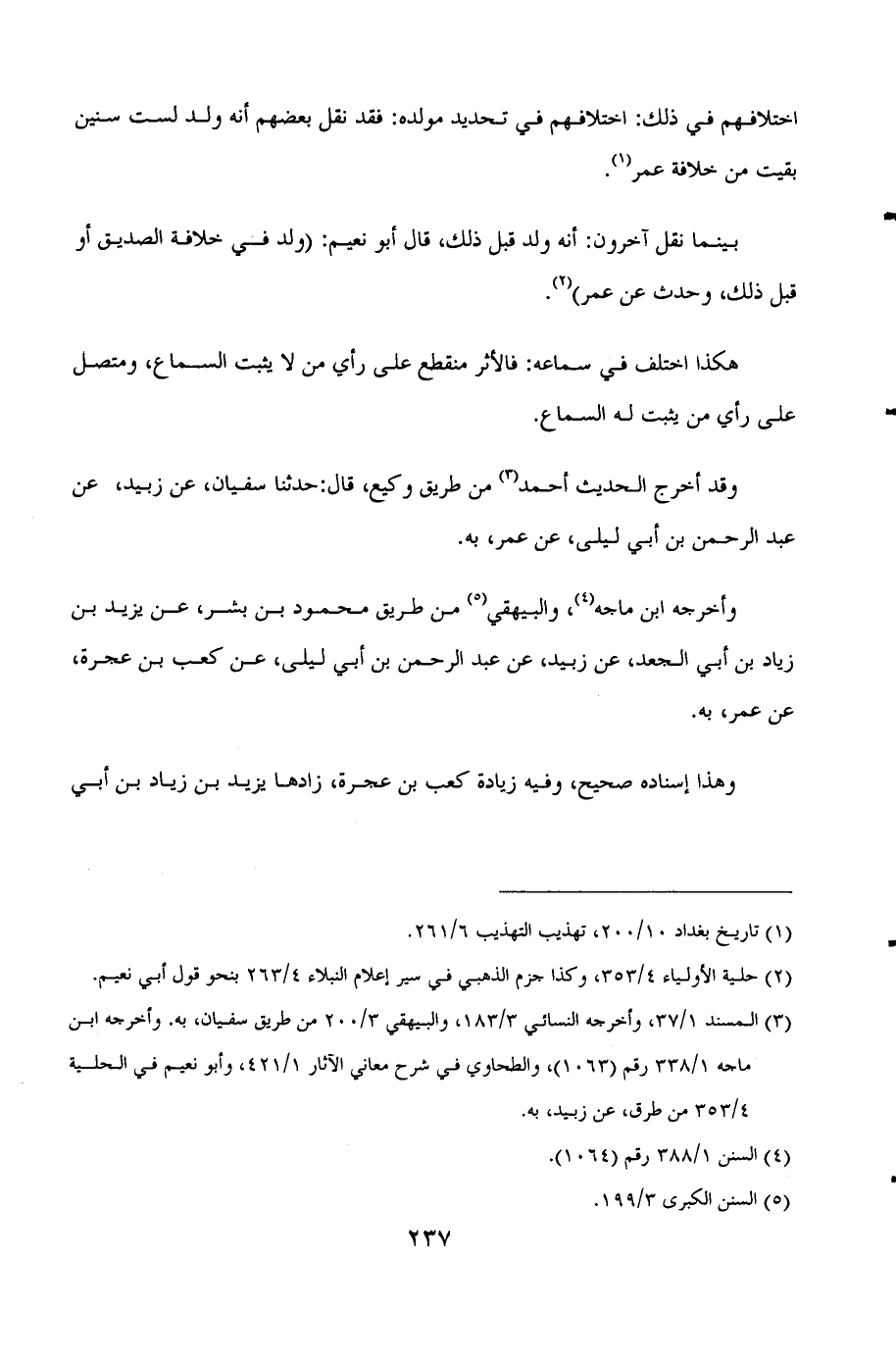 بينما نقل آخرون: أنه ولد قبل ذلك، قال أبو نعيم: ((ولد في خلافة الصديق او قبل ذلك، وحدث عن عمر)) (¬2) .