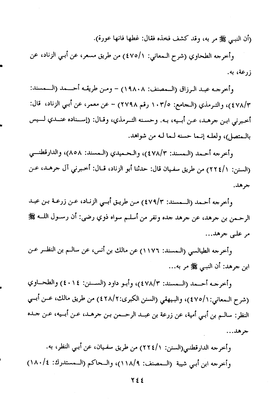 وأخرجه أحمد (المسند: 3/478) ، والحميدي (المسند: 858) ، والدارقطني (السنن: 1/224) من طريق سفيان قال: حدثنا أبو الزناد، قال: أخبرني آل جرهد، عن جرهد.
