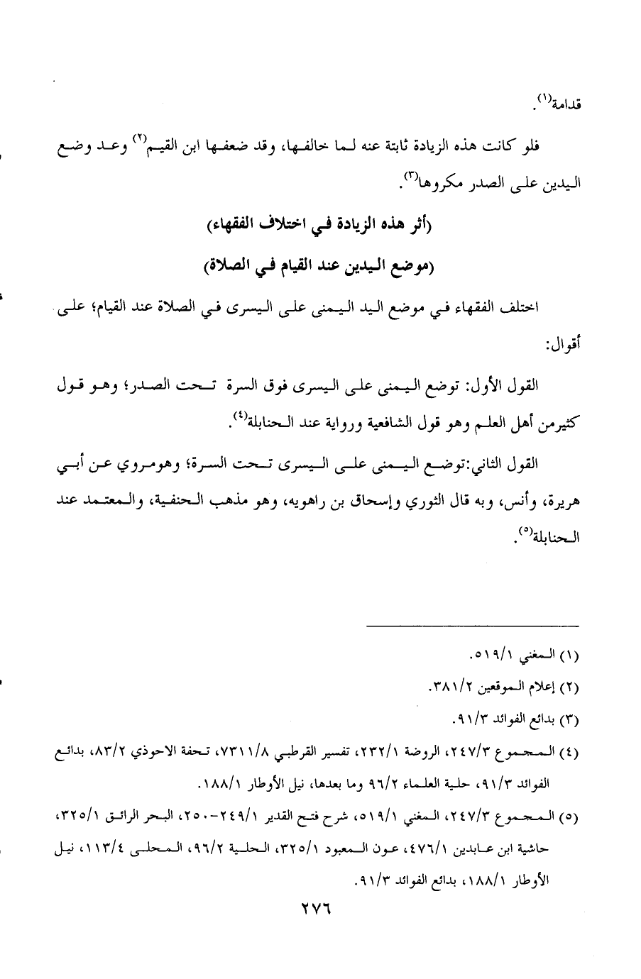 (¬5) المجموع 3/247، المغني 1/519، شرح فتح القدير 1/249-250، البحر الرائق 1/325، حاشية ابن عابدين 1/476، عون المعبود 1/325، الحلية 2/96، المحلى 4/113، نيل الأوطار 1/188، بدائع الفوائد 3/91