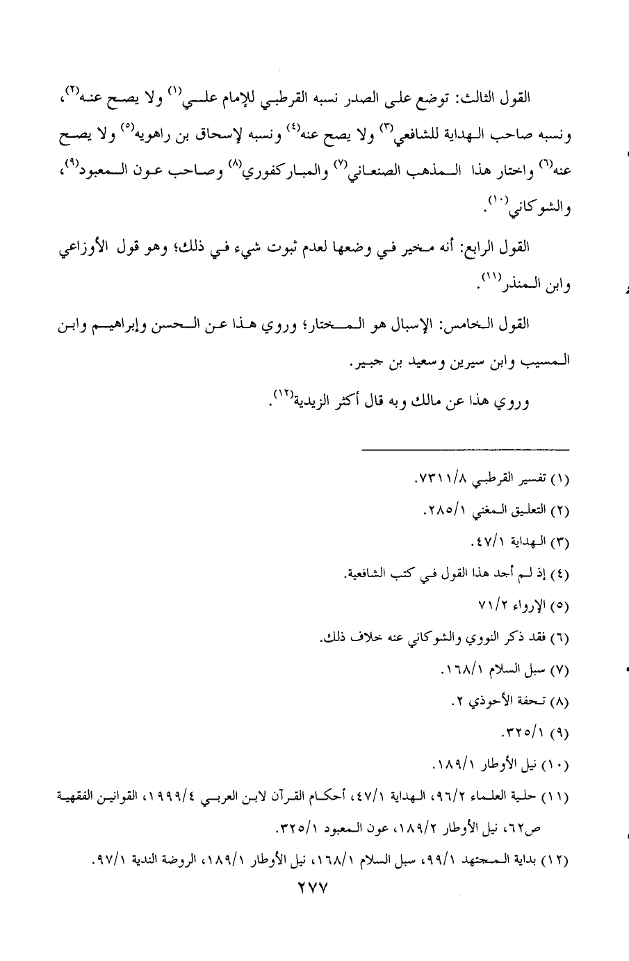 (¬12) بداية المجتهد 1/99، سبل السلام 1/168، نيل الأوطار 1/189، الروضة الندية 1/97.