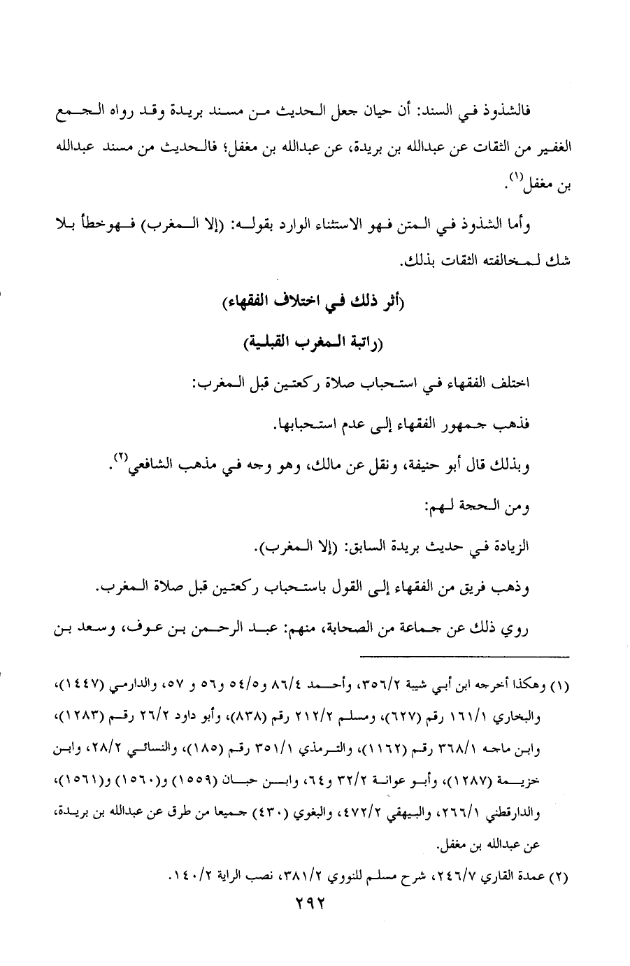 (¬2) عمدة القاري 7/246، شرح مسلم للنووي 2/381، نصب الراية 2/140.